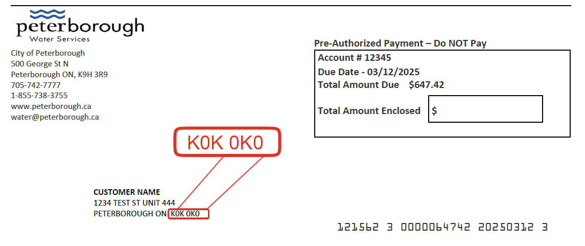 Please enter the postal code exactly as it appears in the mailing address, including the required space between the first three and last three characters (e.g., K9H 2X8).